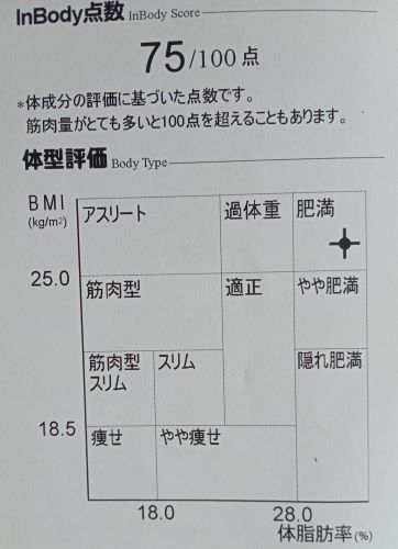・数値的には前回より、筋肉量も脂肪も少し増えている。筋肉が増えているのは嬉しいけど、脂肪が増えるのはNGだよ(泣)筋肉を維持しながら脂肪を減らすのが理想なんだけど・・・