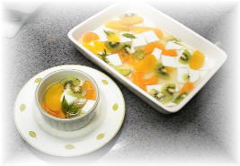 ● 寒天パウダー 4g ● アーモンドエッセンス ● お好みのフルーツや缶詰+あればミント |