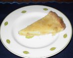 - 煮たりんごは、飾り用を少し残し、4の伸ばしたパイ生地の上に平らに並べるように入れ、その上に6のクリームを流し入れる。さらに飾り用のりんごを散らす。