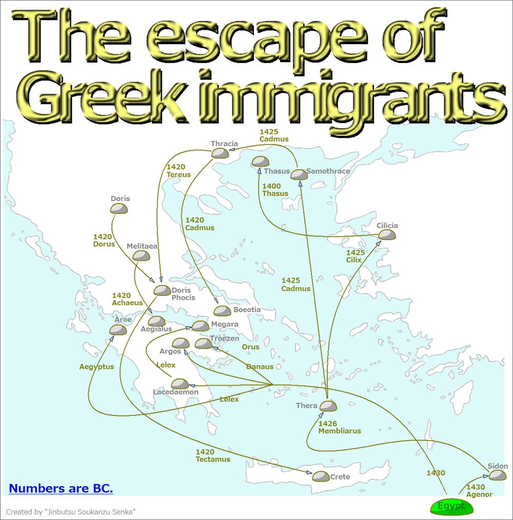 In 1430 BC, Greek immigrants living in Egypt migrated from Egypt to various other regions.