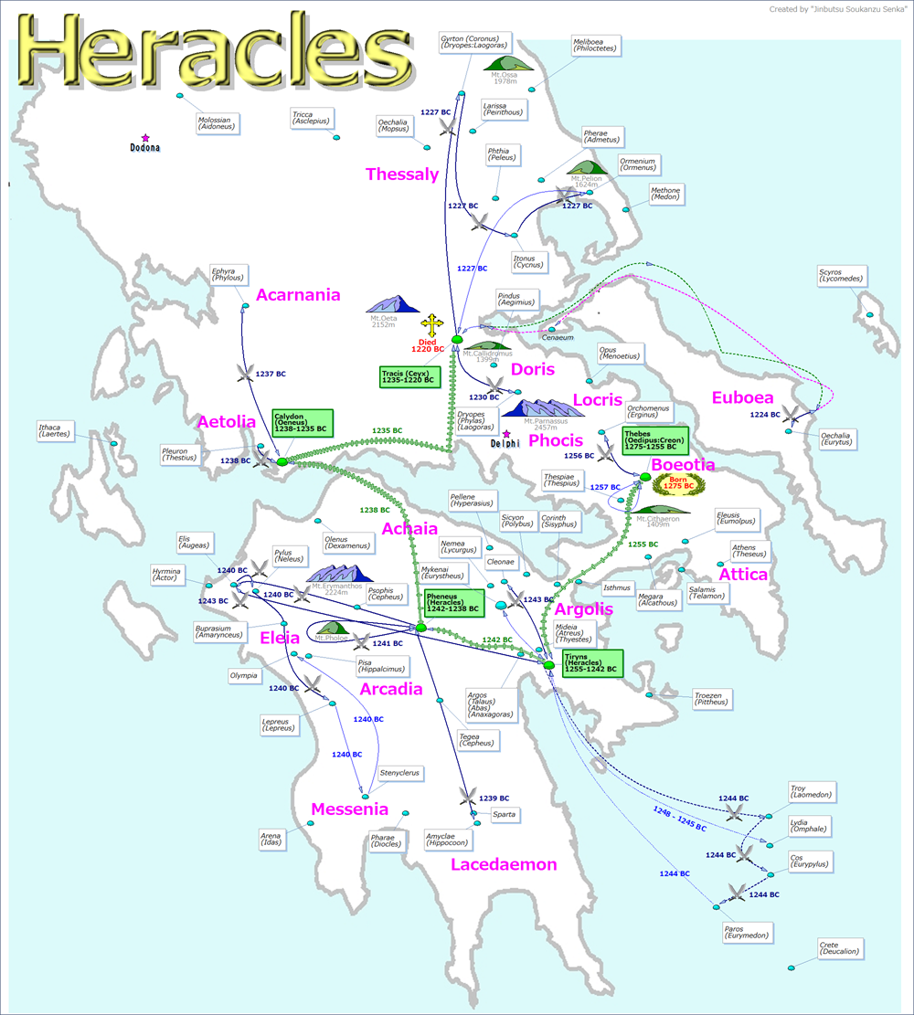 In 1230 BC, Heracles, along with the Malians, attacked Phylas, the Dryopian king, killing him and expelling the Dryopians. [179]