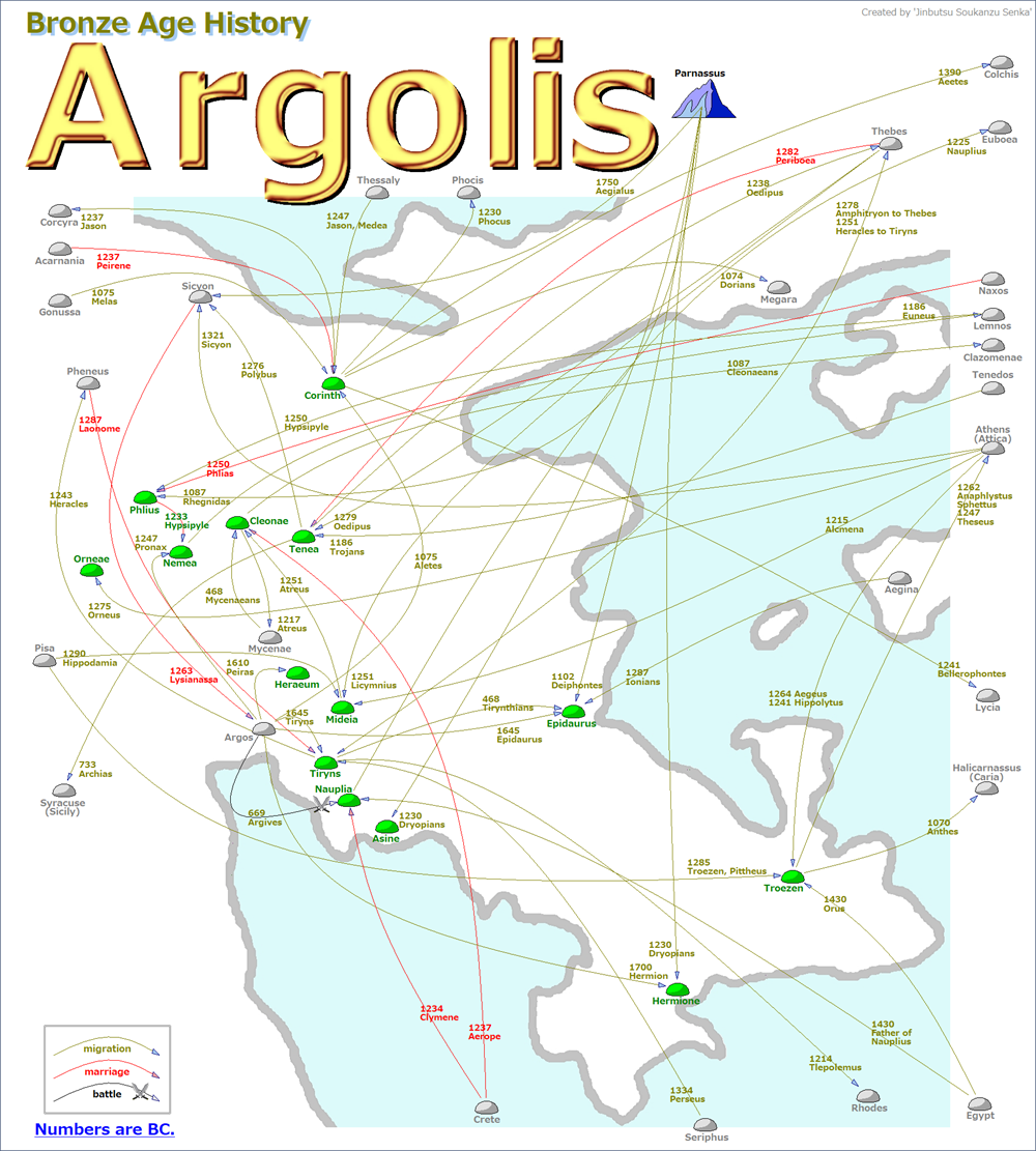 In 1645 BC, Tiryns, son of Argus, son of Niobe, migrated southeast from Argos to near the sea and founded Tiryns. [189]