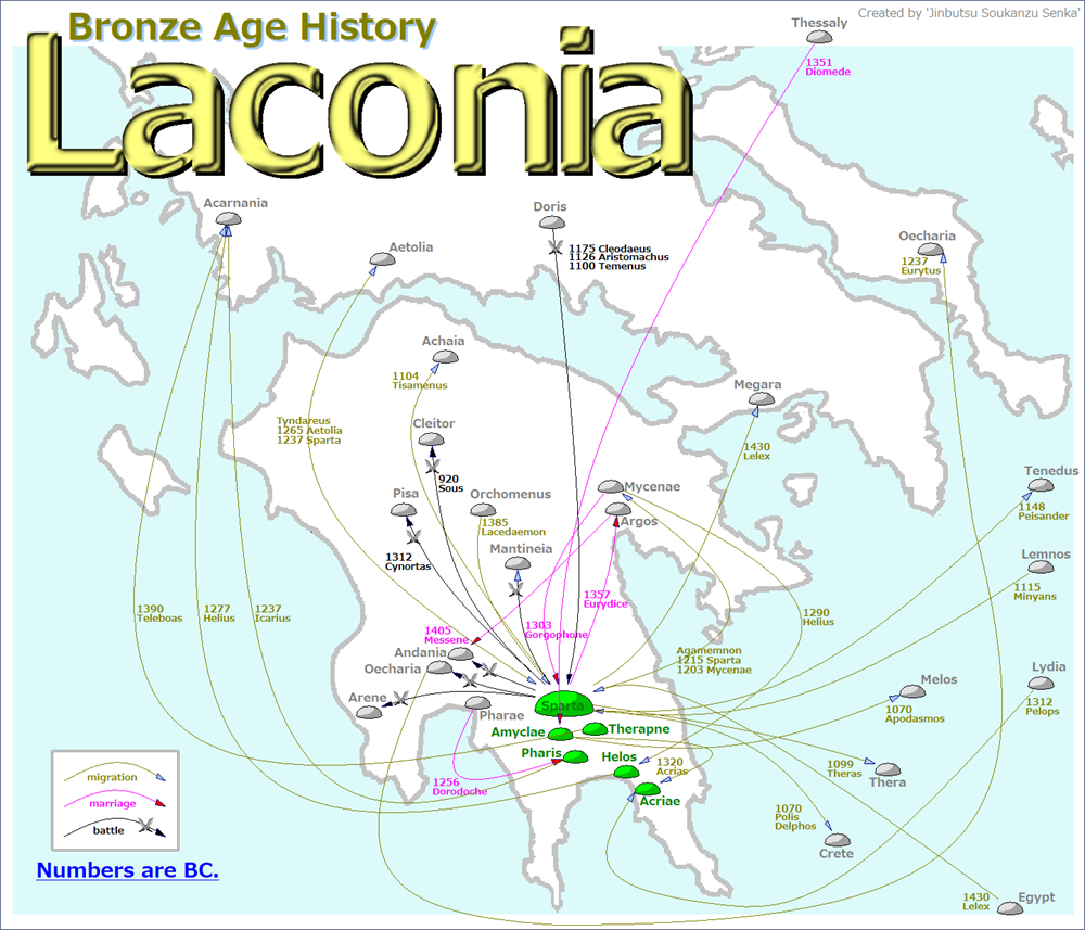 In 1200 BC, Agamemnon annexed Laconia to Mycenae, granting Menelaus dominion over Laconia.[123]