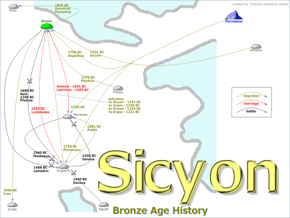 In 1276 BC, Sicyon, son of Marathon, was succeeded by Polybus, son of his daughter Chthonophyle. [69]