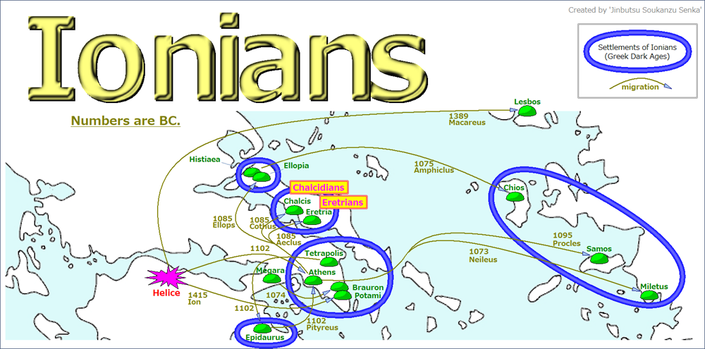 In 1415 BC, the Ionians who lived in Helice, led by Ion, migrated to Attica.