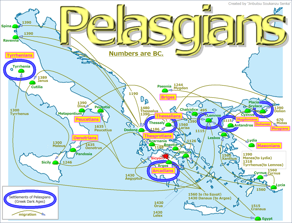 In 1430 BC, the Pelasgians, led by Danaus, son of Belus, migrated to Peloponnesus and settled in Argos. [29]