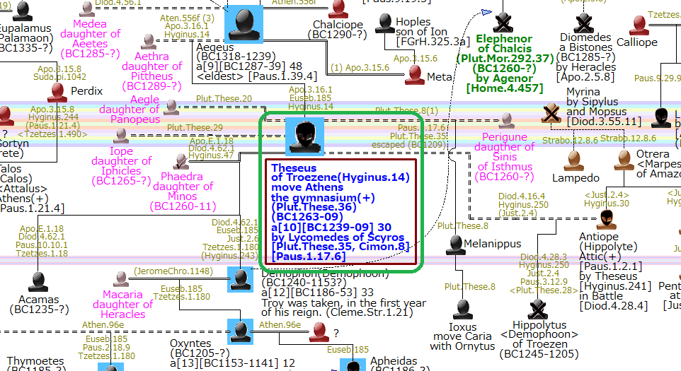 I used Theseus, the son of Aegeus, as a reference because I could identify the year of his ascension to the King of Athens and associated with many people of the time.
